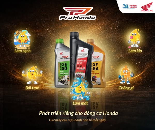 Dầu nhờn Pro Honda được phát triển riêng cho động cơ Honda, giúp duy trì hiệu suất và bảo vệ máy tối ưu, để xe luôn vận hành êm ái và bền bỉ trên mọi hành trình.