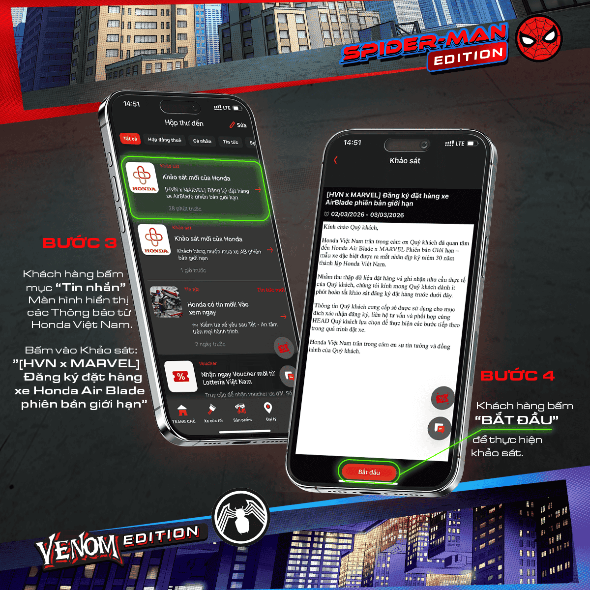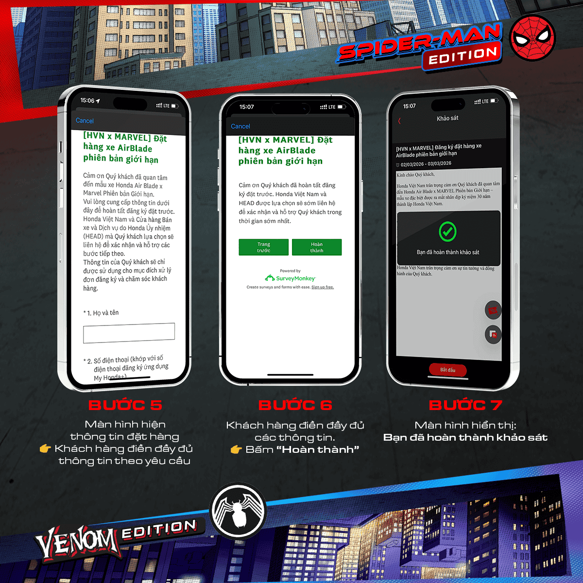 Bấm vào Khảo sát mới:” [HVN x MARVEL] Đăng ký đặt hàng xe Air Blade phiên bản giới hạn”