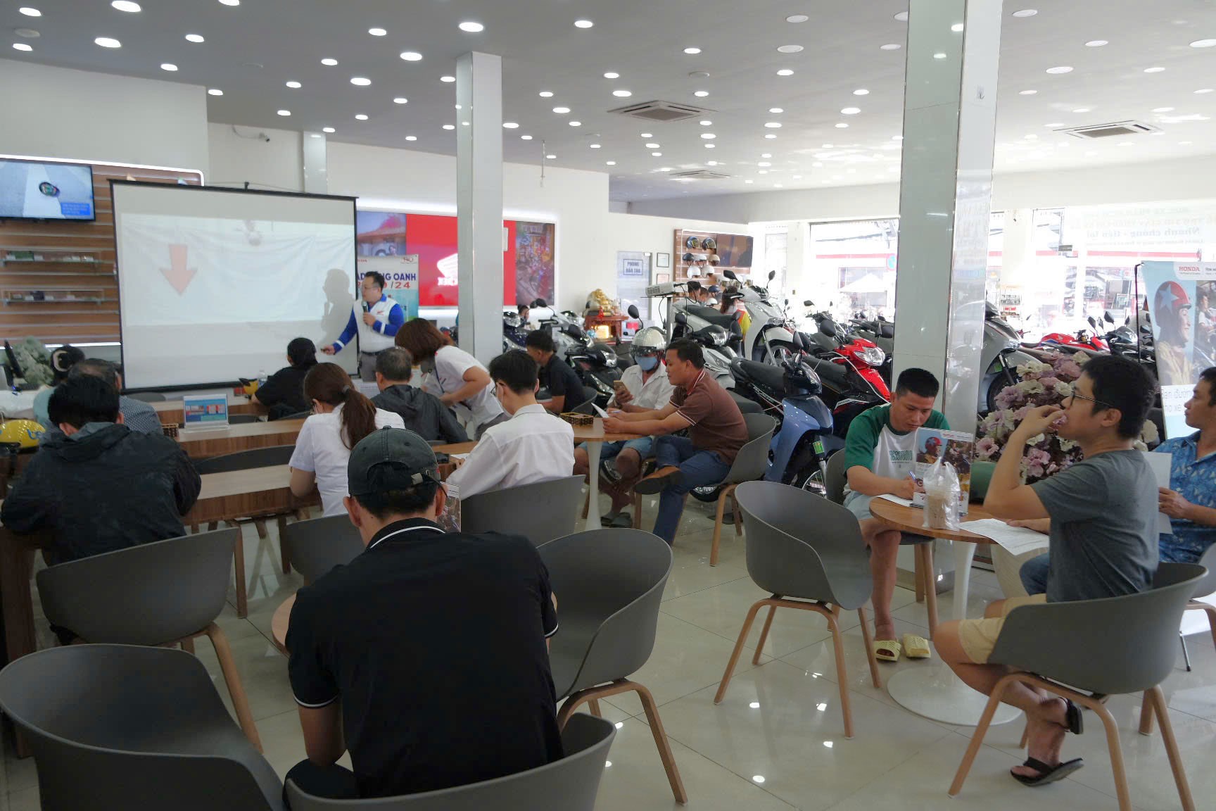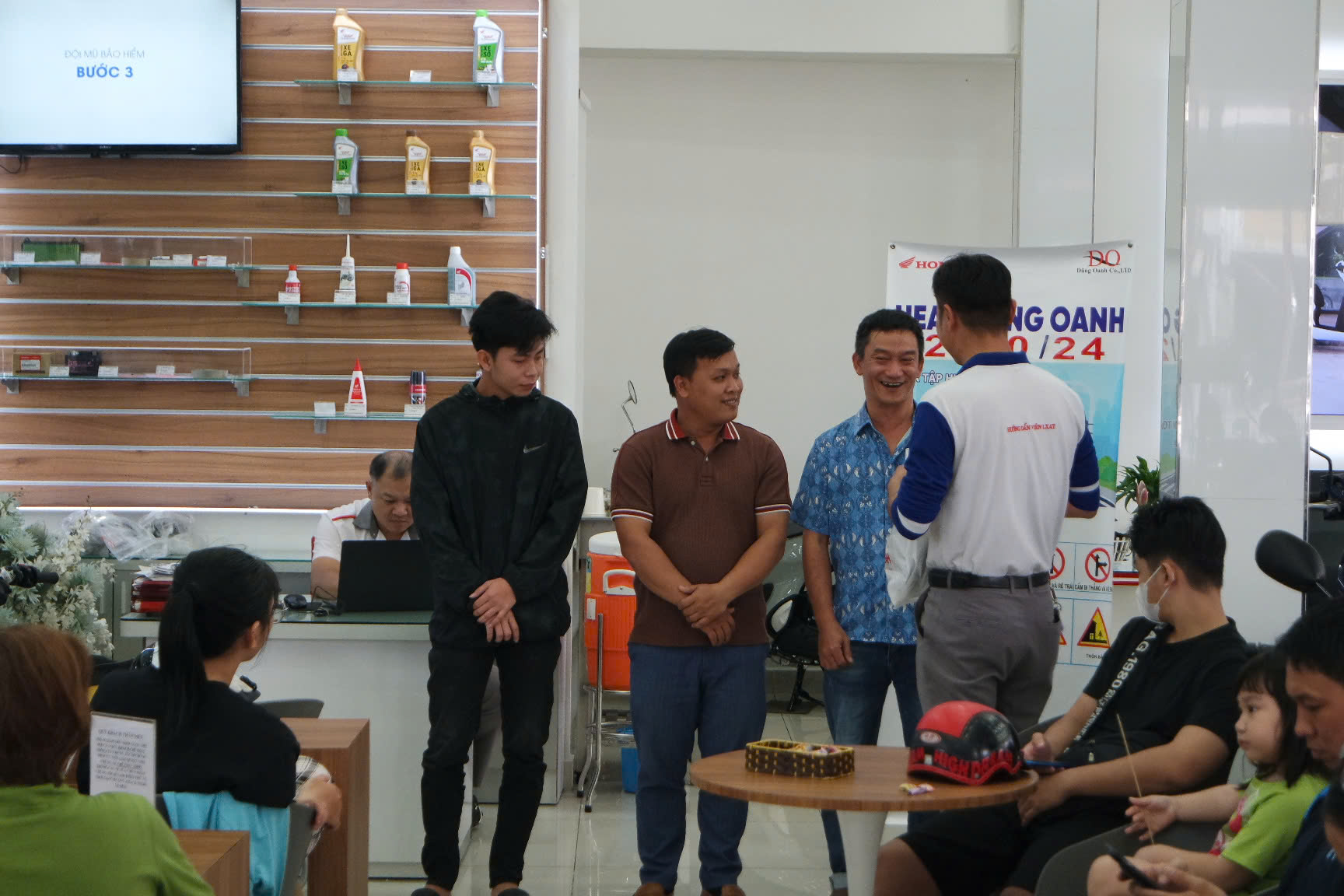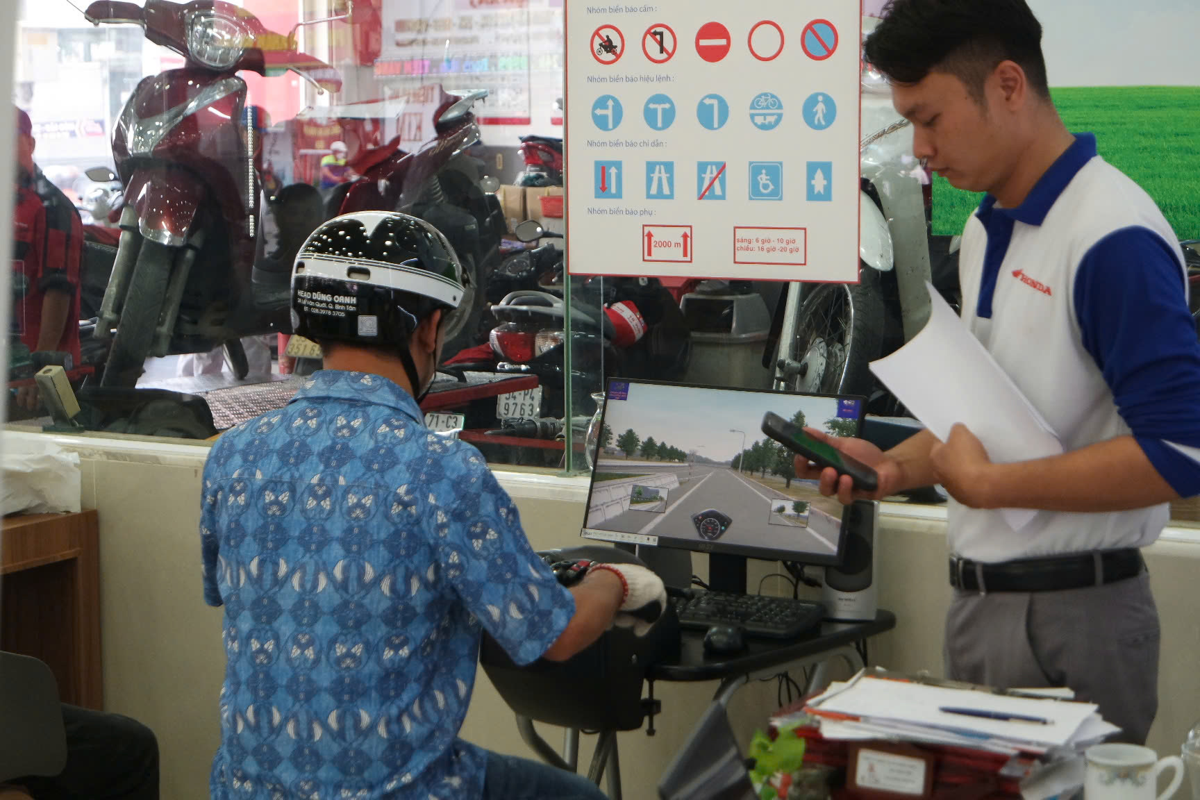 Sau đó, để khắc sâu kiến thức ATGT vừa học, đồng thời chọn ra những cá nhân xuất sắc nhất, HEAD đã cho khách hàng tham gia lớp tập huấn làm bài kiểm tra lý thuyết, từ đó chọn người thực hành trên máy RT . Chương trình đã chọn ra 3 cá nhân xuất sắc nhất để trao giải Nhất, Nhì và giải khuyến khích.
