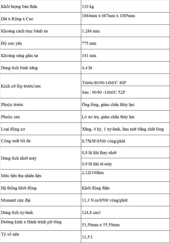 THÔNG SỐ KỸ THUẬT