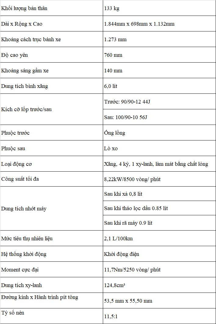 THÔNG SỐ KỸ THUẬT