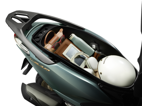 Dung tích chứa đồ lên đến 37 lít nhờ thiết kế thông minh giúp mở rộng tối đa không gian mặt phẳng đáy và diện tích vòm dưới yên xe, cho phép chứa 2 mũ bảo hiểm cả đầu cỡ lớn cùng nhiều vật dụng cá nhân thiết yếu.