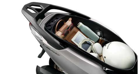 Dung tích chứa đồ lên đến trên 37 lít nhờ thiết kế thông minh cùng tấm chia ngăn tiện lợi giúp mở rộng tối đa không gian mặt phẳng đáy và diện tích vòm dưới yên xe, cho phép chứa 2 mũ bảo hiểm cả đầu cỡ lớn cùng nhiều vật dụng cá nhân thiết yếu.