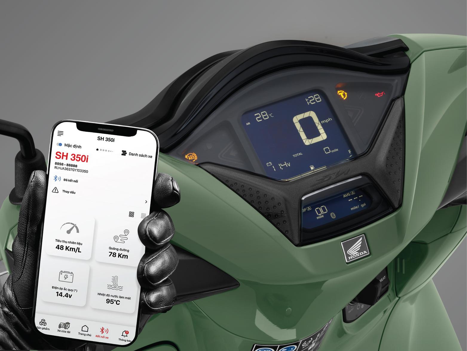 Công nghệ bluetooth kết nối với điện thoại thông minh tiếp tục được trang bị trên SH350i. Bằng việc kết nối Bluetooth qua ứng dụng My Honda+, khách hàng có thể xem toàn bộ thông tin xe như tình trạng vận hành, lịch sử sửa chữa, bảo dưỡng, bảo hành, tiêu hao nhiên liệu, lịch sử đỗ xe và các tin tức sự kiện của Honda Việt Nam. Công nghệ này còn hỗ trợ gửi thông điệp về ngày có sự kiện đặc biệt của khách hàng tới màn hình phụ trên mặt đồng hồ khi khách hàng cài đặt ngày này trên ứng dụng.