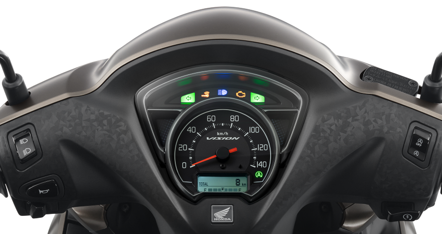 Thiết kế mặt đồng hồ trẻ trung, thanh lịch nhưng không kém phần hiện đại với màn hình LCD hiển thị số quãng đường và mức nhiên liệu.