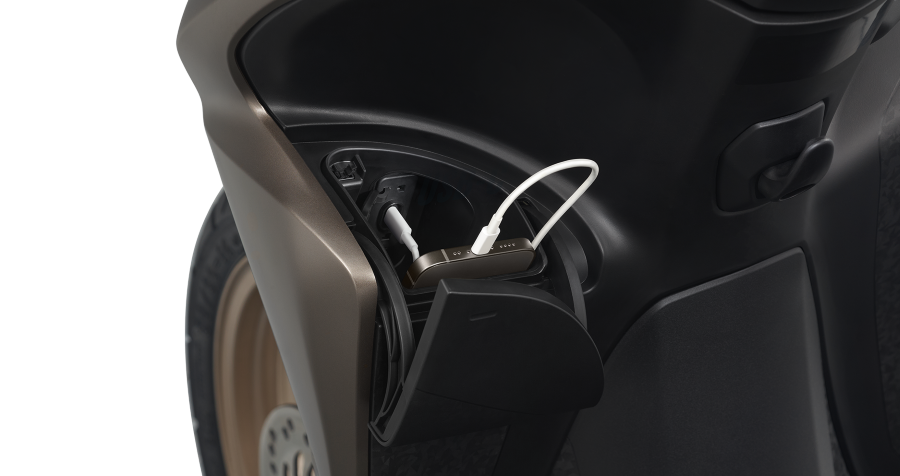 Hộc đựng đồ phía trước có nắp đậy, kích thước rộng rãi và có khả năng chứa nhiều vật dụng cá nhân và tích hợp cổng sạc USB loại C tiện dụng.