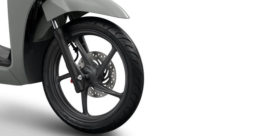 Bánh xe trước có kích thước lớn 16 inch, đem đến tư thế lái xe cao, thẳng cùng tầm nhìn thoáng rộng.