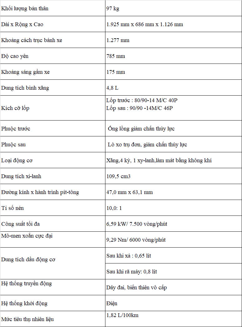 eSP - Động cơ thông minh với thiết kế nhỏ gọn, 110cc, 4 kỳ, xy-lanh đơn, làm mát bằng không khí và tích hợp những công nghệ tiên tiến: hệ thống phun xăng điện tử (PGM-FI),động cơ tích hợp bộ đề ACG, hệ thống ngắt động cơ tạm thời (Idling stop), giảm thiểu ma sát và khả năng đốt cháy hoàn hảo.