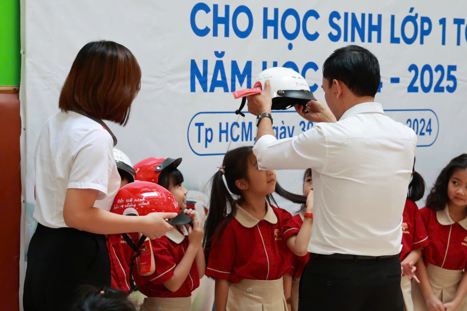 "Trao tặng Mũ bảo hiểm cho học sinh lớp Một năm học 2024 – 2025" tại trường Tiểu học Hồng Ngọc (RUBY SCHOOL)